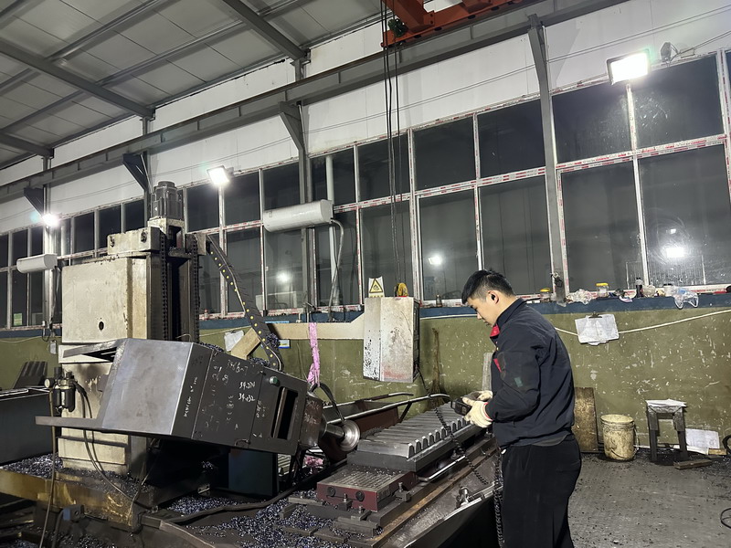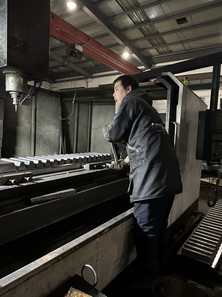 3月30日下午,距離南通云翔機械齒條齒輪車間白班已下班半小時,數(shù)控車間主任鄧工還沒有下班,正在與夜班的員工小曹一起裝夾一塊大型導板;同時段,本該下班的老沈師傅雙手各拎一桶水,奔忙在車間。晚上8時,夜班的小顧、小張、小曹各自認真地操作數(shù)控銑床上的工件,不停地測量,保質保量地完成各自的齒條齒輪生產任務。此時的老沈還在奮力工作,這批貨比較急,要多加一會班,才能完成下料保證明天的下道工序,保證產品按時交到客戶手中。