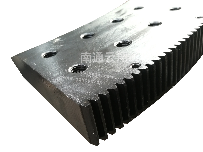 說明:此款齒條外型尺寸Φ1060×30,選用優(yōu)質(zhì)的鍛件材料。采用先進的銑齒工藝,齒面高頻后使產(chǎn)品更耐磨,表面做了發(fā)黑處理防銹。